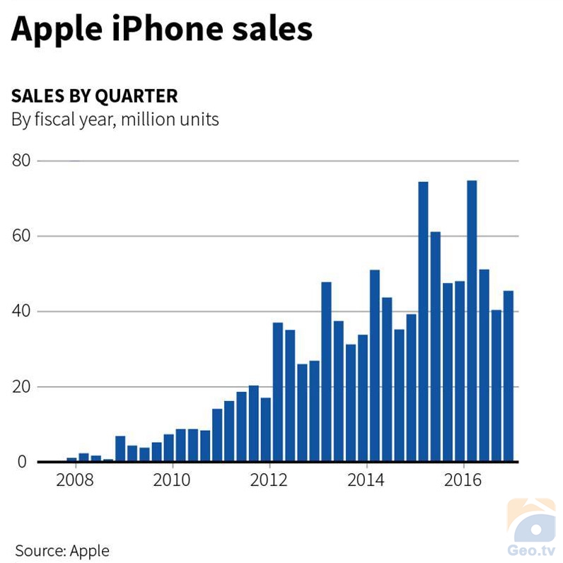 Analysts were expecting declines in iPhone sales with many smartphone markets saturated, a situation that has led Apple to focus on new products like the Apple Watch and services like mobile payments and streaming music.